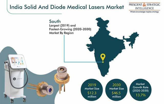 The Indian solid and diode medical lasers market generated revenue of $12.3 million in 2019, and it is expected to progress with a CAGR of 13.7% during 2020–2030. A key trend observed in the Indian solid and diode medical lasers industry is advancements in technology.